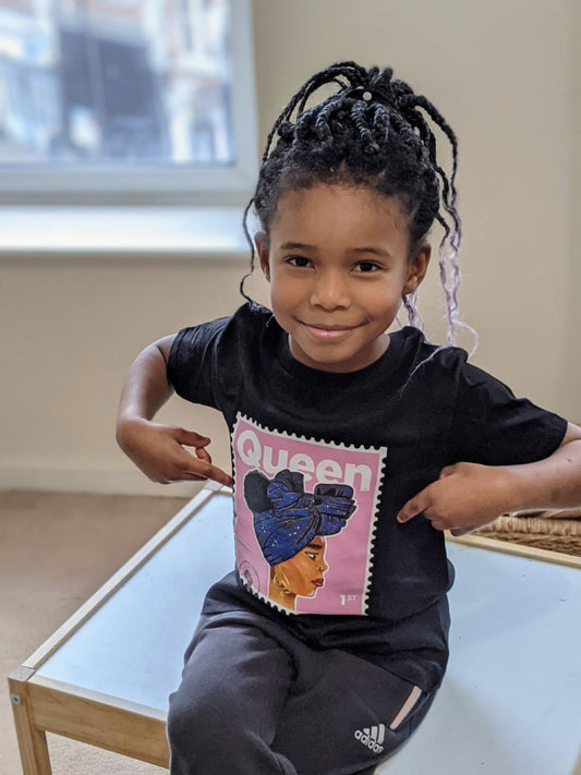 "Queen Junior" Black Organic Cotton T-Shirt - Pink stamp